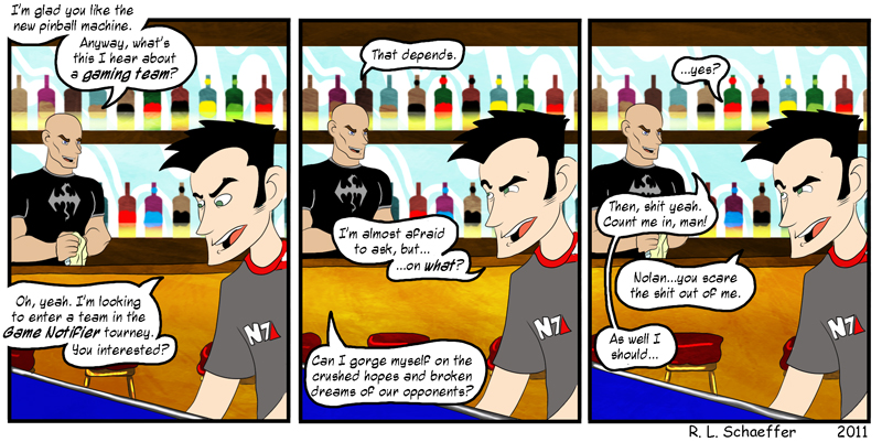 And you thought I’d forgotten about Nolan, heh.  In the strip’s continuity, Nolan is Ray’s roommate and the owner of The Two Rivers Pub.  An avid fan of all things Wheel of Time and Elder Scrolls, Nolan isn’t always right, but is never wrong.