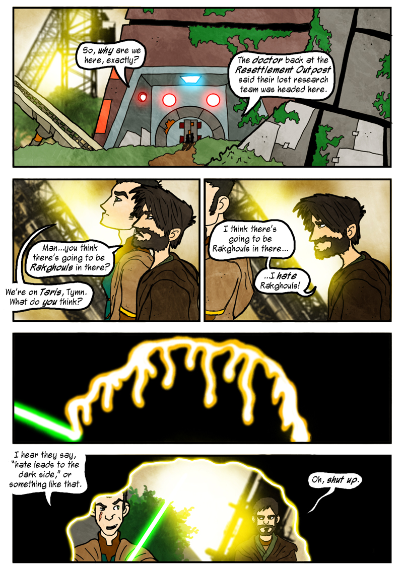 Since I’m late with the comic, I thought I’d post a little something I’m doing just for fun. Several years ago…I think something like a decade, now…I wrote a novel for my friends (something akin to Fallen Knights) starring my friends. It wasn’t particularly well-written, but they all loved it–or so they say–and we’ve all seemed to have clung to the characters in one way or another. With Tim and I, it’s in the recurring use of their names: Rayloth and Tymn. Most recently, these names were used in BioWare’s The Old Republic. I may have mentioned it once or twice. It’s a good game, you should check it out.