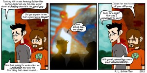 Ohhh wow, this is definitely a difficult facet of parenting. Emma isn’t quite there yet, but she’s beginning to pick up on things and asking questions. We haven’t watched any superhero movies yet though. Very poignant comic though, hehe. Love it!