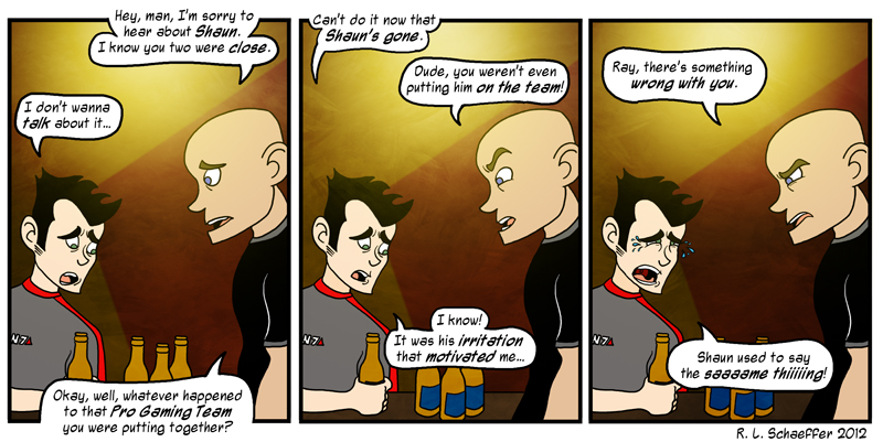Sorry about the delay. I had to do night drills at my “day job” so I was unable to get time to make the strip. That said, it’s late now and I have to be up at 4 in the morning to go to said job, so I’ll leave you with this touching little conversation.