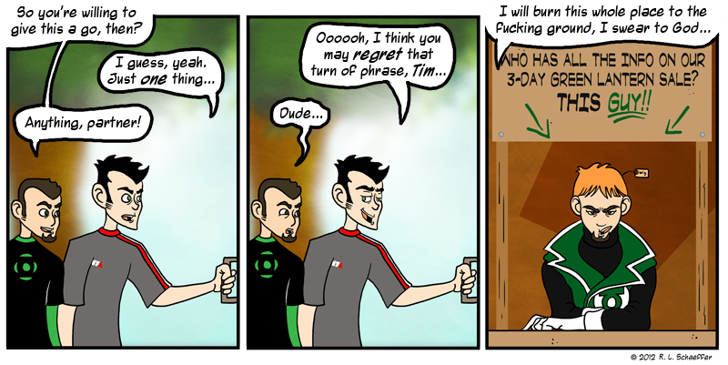 The one thing anyone who knows Tim can tell you is that he is an avid fan of the Green Lantern, Hal Jordan in particular. And, any GL fan can tell you that there is one Lantern whose name should never be mentioned….