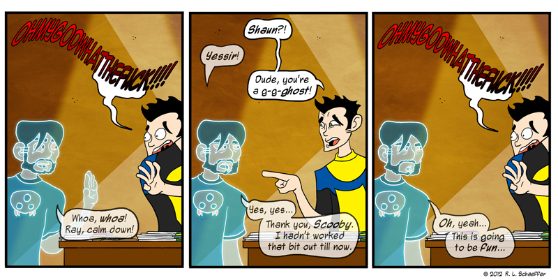 Okay, let me be the first to say that this is now my best work art wise with OaG. I’m still not feeling well but really wanted to make sure you guys got a strip before midnight, as I promised. That said, I still think the joke’s funny, heh. Oh, and don’t worry, the Invincible shirt isn’t permanent.