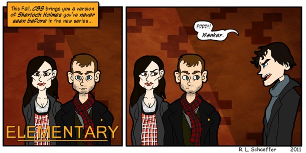 I have no doubt that CBS’s new show will actually be pretty good and, from what I can tell, it doesn’t have a whole lot in common with BBC’s Sherlock other than the fact that the premise is to bring the characters into a modern setting. That said, however, the ads I’ve seen to date for Elementary come off as if CBS is the first network to have ever conceived of such a premise and, well, that doesn’t sit well with me. I get that CBS is an American broadcasting company and BBC is, uh, British, but they couldn’t possibly think that there isn’t a single American viewer who hasn’t seen BBC’s show. Over the last several years shows like Sherlock and Dr. Who–duh–have blasted into the American viewership with a fervor that most American shows can’t hope to achieve. This, of course, is mostly due to the fact that American programing has slipped so far into the Reality genre that it’s hard to imagine any of the big networks would take a risk on an original concept.